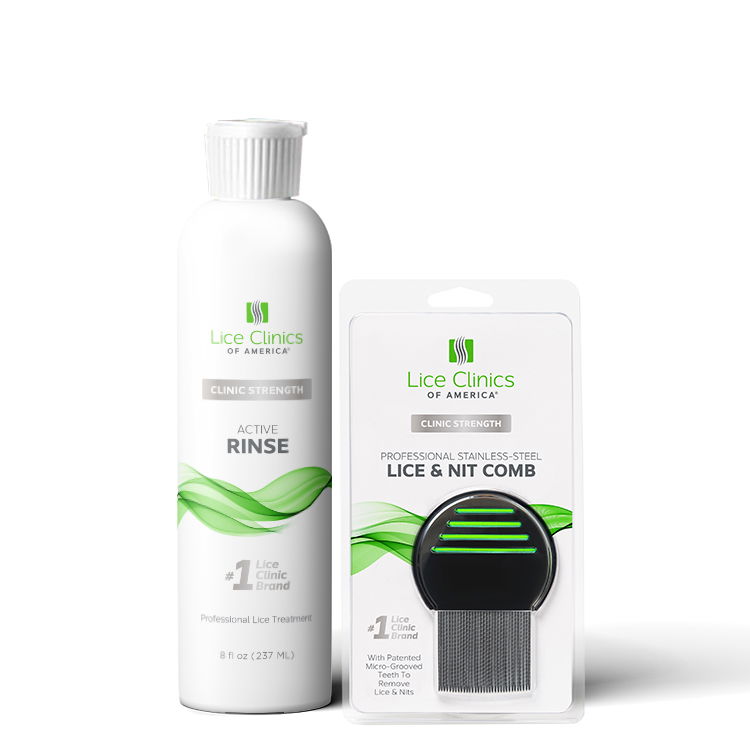 Our Comb-Out Kit includes one bottle of our Active Rinse solution and a Lice & Nit Comb. Our Active Rinse solution is non-toxic and pesticide free and is exactly what we use in our clinics to kill lice. This rinse immobilizes lice and facilitates the removal of lice and eggs – we recommend the professional lice comb with this product.